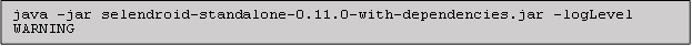 For example, set Selendroid to print the WARNING log only, you can use this command
