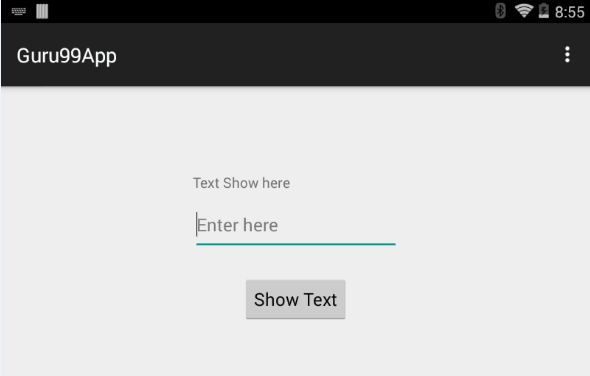 Suppose we have an Android application under test name gtupapersApp. The application includes a text field and a button name "Show Text".