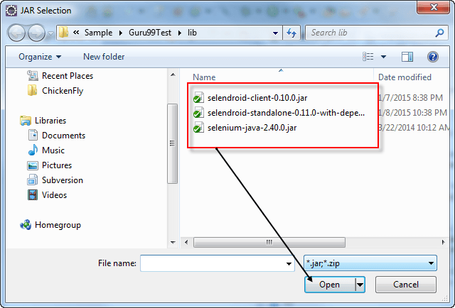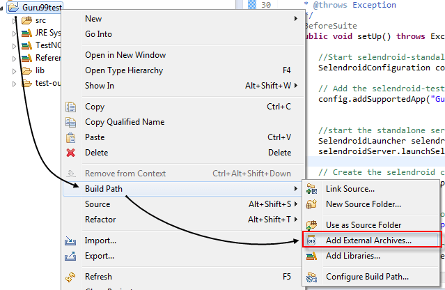 Step 2) Add selenium and Selendroid jar file in eclipse environments