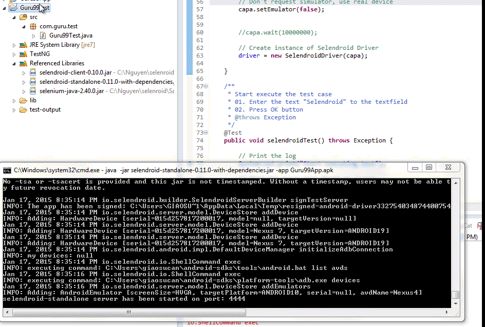 You already have known the importance of the Selendroid. Now let's get our hands dirty with Selendroid.