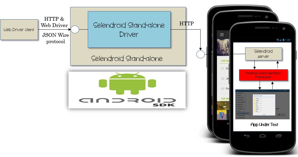 Selendroid is based on the Android instrumentation framework. Selendroid tests are written base on the Selenium Web driver client API, so it supports full integration with current Selenium frameworks.