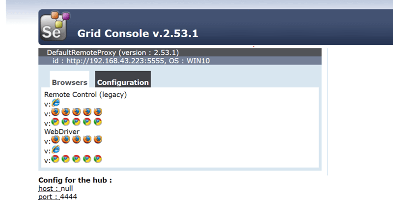 The browsers are displayed on the grid console. Hence we can be sure that nodes are configured successfully.