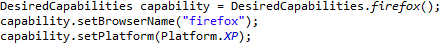 We will use the platform and the browserName in our WebDriver as shown below (of course you need to import the necessary packages first).
