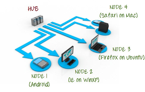 Selenium Grid uses a hub-node concept where you only run the test on a single machine called a hub, but the execution will be done by different machines called nodes.