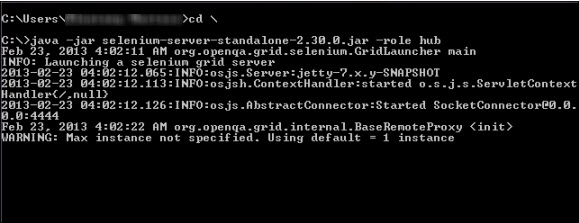 Step 6) Grid Console screen will appear which indicates the hub is up and running