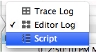 To see your script, hit the Trace Log/Editor Log drop down and switch to script log view.