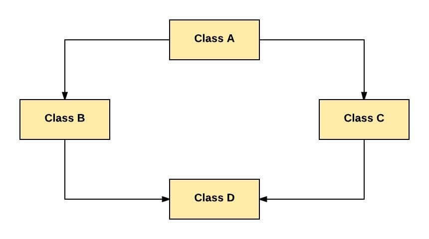 As per above example, all the public and protected members of Class A are inherited into Class D, first via Class B and secondly via Class C.