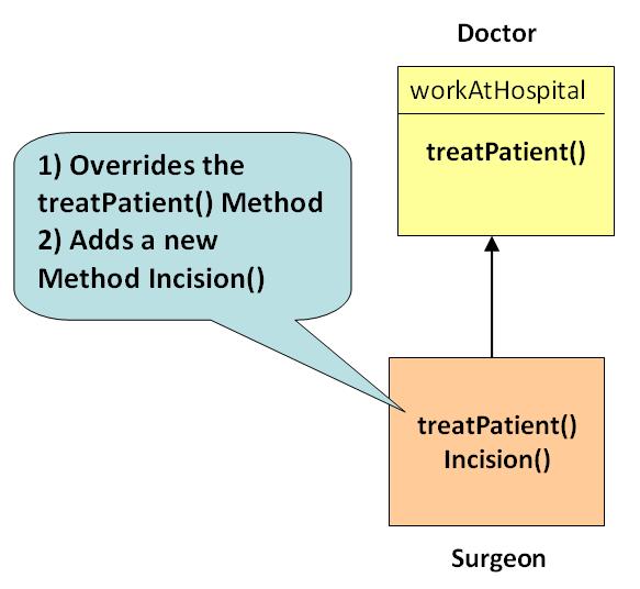 What if the treatPatient method in the Surgeon class wants to execute the functionality defined in Doctor class and then perform its own specific functionality?