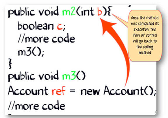 Once the method has completed its execution. The flow of control will go back to the calling method. Which in this case is method m2.