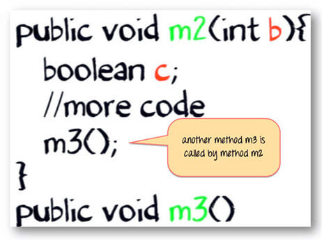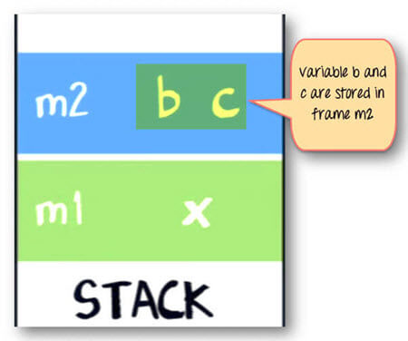 Method m1 is calling method m2. In the stack java, a new frame is created for m2 on top of the frame m1.