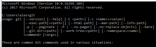 Step 7) You can execute Git repositories in your Jenkins once Git has been installed on your machine. To check if it has been successfully installed onto your system, open your command prompt, type "Git" and press enter. You should see different options come up for Git: