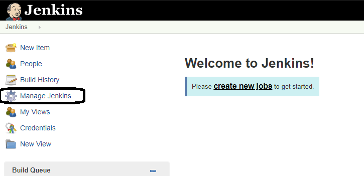 Step 1: Click on the Manage Jenkins button on your Jenkins dashboard: