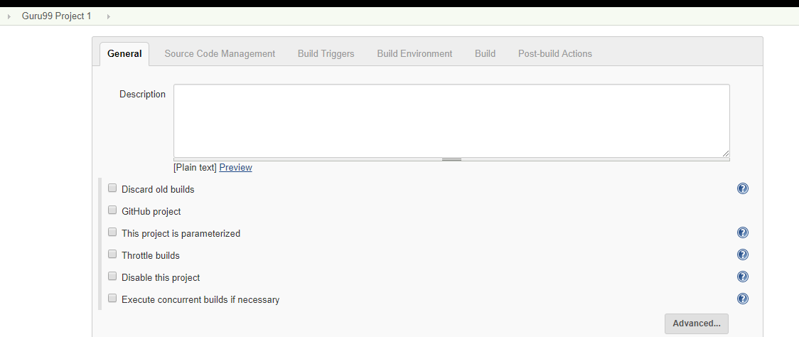 NOTE: If the Git option does not appear, try re-installing the plugins, followed by a restart and a re-login into your Jenkins dashboard. You will now be able to see the Git option as mentioned above.
