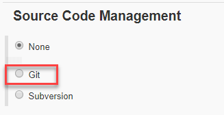 Step 4) You will see a Git option under Source Code Management if your Git plugin has been installed in Jenkins:
