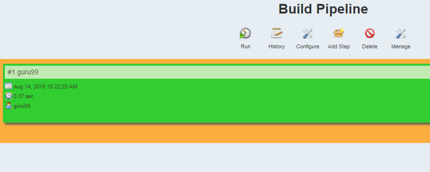 In this Jenkins pipeline example, we see that the button is green. Hence, the pipeline is successful.