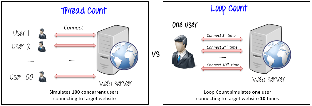 Right click on the "Test Plan" and add a new thread group: Add -> Threads (Users) -> Thread Group In the Thread Group control panel, enter Thread Properties as follows: The Thread Count and The Loop Counts are different.