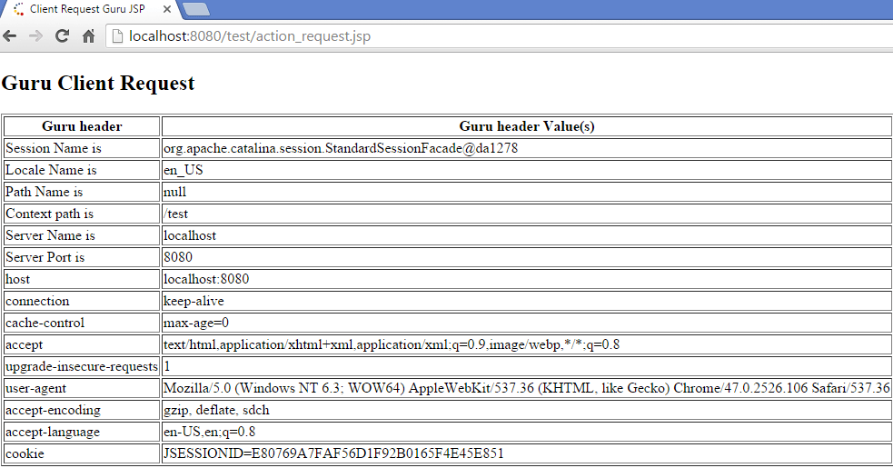 We are getting the series of values like session name, locale name, path name, server name, port name, host, context path and all the header values of that JSP.