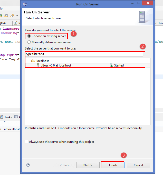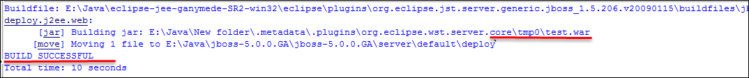 In the below screenshots, you can notice that our JSP program gets executed, and the test application is deployed in JBoss server marked in the red box.