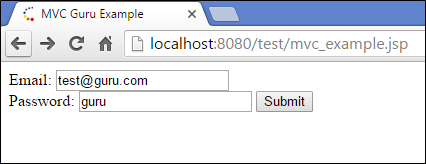 When you click on mvc_example.jsp you get the form with email and password with the submit button.