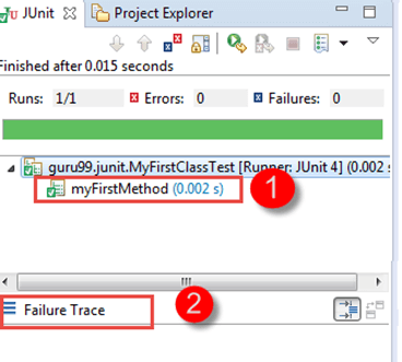 Once TestRunner.java executes our test methods we get output as failed or passed. Please find below output explanation: