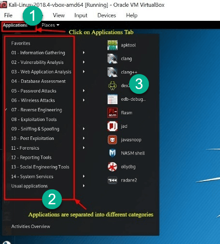 Kali Linux has over 600 preinstalled penetration-testing applications to discover. Each program with its unique flexibility and use case. Kali Linux does excellent job separating these useful utilities into the following categories: