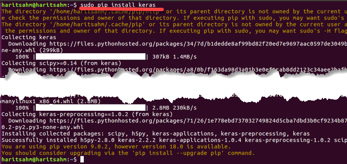 it will begin installing Keras and also all of its dependencies.You should see something like this :