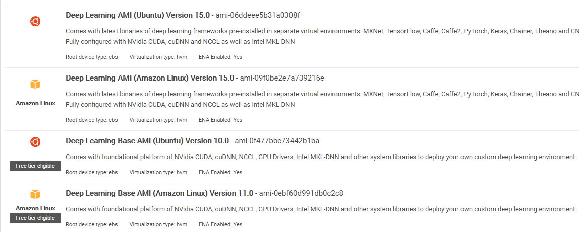 But if you want to try a custom deep learning framework for research, you should install the Deep Learning Base AMI because it comes with fundamental libraries such as CUDA, cuDNN, GPUs drivers, and other needed libraries to run with your deep learning environment.