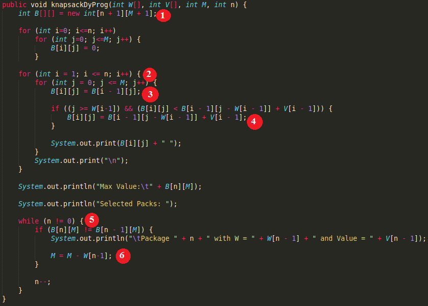 Explanation of Knapsack code: