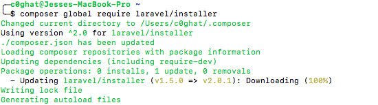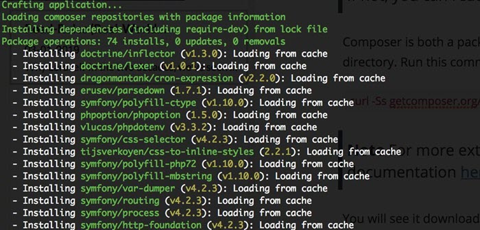 This will download and install all the framework files themselves as well as all dependencies that it requires. The packages will be saved inside the vendor directory. Once it is downloaded and installed, its as easy as issuing the following command: