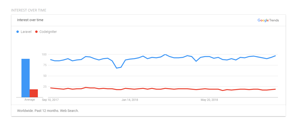 | Average Salary | The average salary for "Laravel developer" ranges from approximately $71,459 per year | The average salary for "CodeIgniter developer" ranges from approximately $47,753 per year |