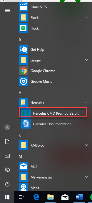 Step 8) In the start menu, click on the Hercules CMD prompt.