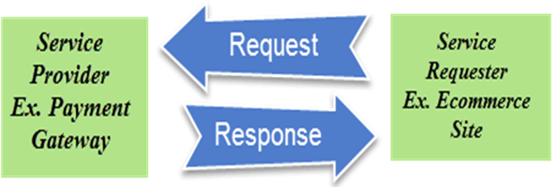 (For example, in the above image, Payment Gateway is a service which can be reused by any e-commerce site. Whenever a payment needs to do, the e-commerce site calls/Requests the Payment Gateway service. After payment is done on a gateway, a response is sent to the e-commerce website)