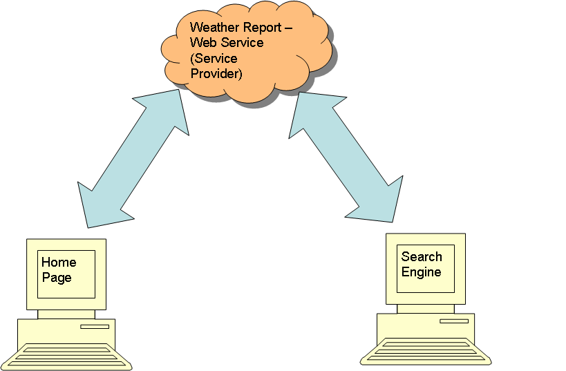 A home page of a Website and a Search Engine displays everyday weather report. Instead of coding the weather report section all over, a Service of weather report can be bought from a vendor and integrated into the pages.