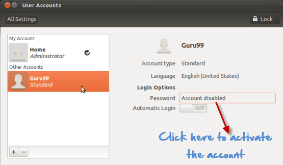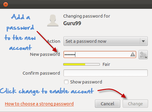 To activate it, click the password option and add a new password. Click change to enable the account.