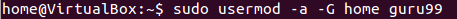 sudo usermod -a -G GROUPNAME USERNAME | Add user a to a usergroup |