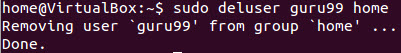 sudo deluser USER GROUPNAME | Remove user from a user group |