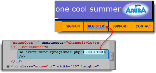 In this example, we shall access the "REGISTER" link found on the Mercury Tours homepage.