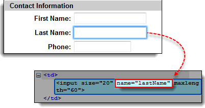 Step 1. Navigate to Mercury Tours' Registration page (http://demo.gtupapers.com/test/newtours/register.php) and inspect the "Last Name" text box. Take note of its HTML tag ("input" in this case) and its name ("lastName").