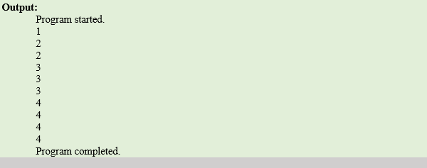 Example 1: In this example, we are going to print number starting from 1 using Basic loop statement. Each number will be printed as many times as its value. The upper limit of the series is fixed at the program declaration part. Let us learn how we can use the label concept to achieve this. For that, we will execute the following code