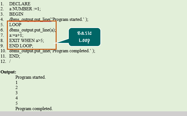 Note: Basic loop statement with no EXIT keyword will be an INFINITE-LOOP that will never stop.