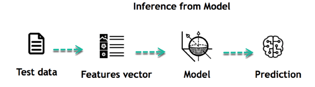 When the model is built, it is possible to test how powerful it is on never-seen-before data. The new data are transformed into a features vector, go through the model and give a prediction. This is all the beautiful part of machine learning. There is no need to update the rules or train again the model. You can use the model previously trained to make inference on new data.