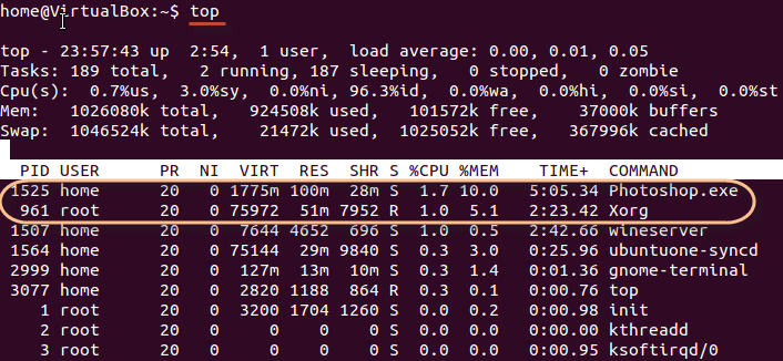 | TIME+ | Total CPU time | 5:05.34 | 2:23.42 |