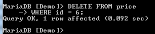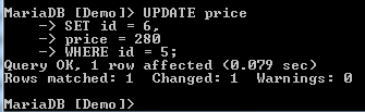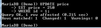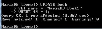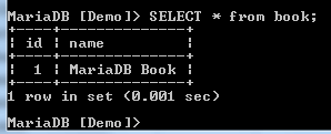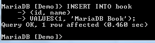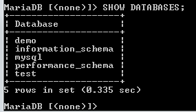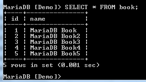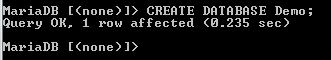 The above image shows that the MariaDB command prompt has changed from none to the name of the database that has been selected.