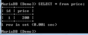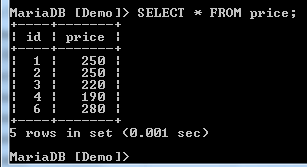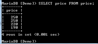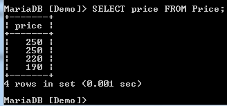 When we select the price column from the table, we get the following result: