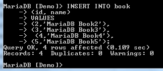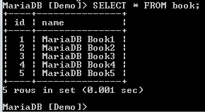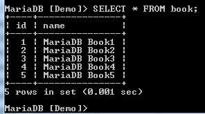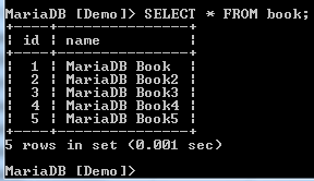 To see the contents of the book table, run the following command: