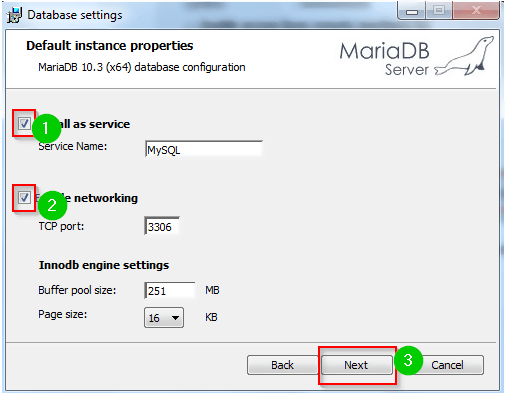Step 7) In the next window, type a name for the instance, choose the port number, and set the necessary size. Click the Next button: