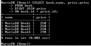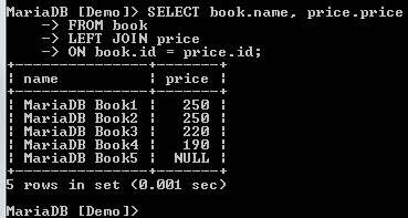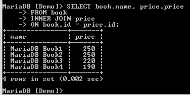 We will create two tables within the Demo database, Book, and Price tables. Each table will have two columns.