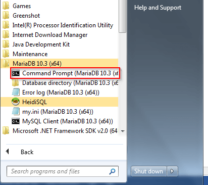 Step 1) Click Start, choose All Programs then click MariaDB…