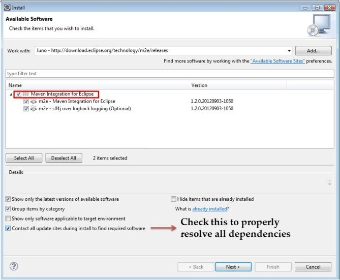 For this tutorial, we will use Eclipse (Juno) IDE for Java Developers to set up Selenium WebDriver Project. Additionally, we need add m2eclipse plugin to Eclipse to facilitate the build process and create pom.xml file.