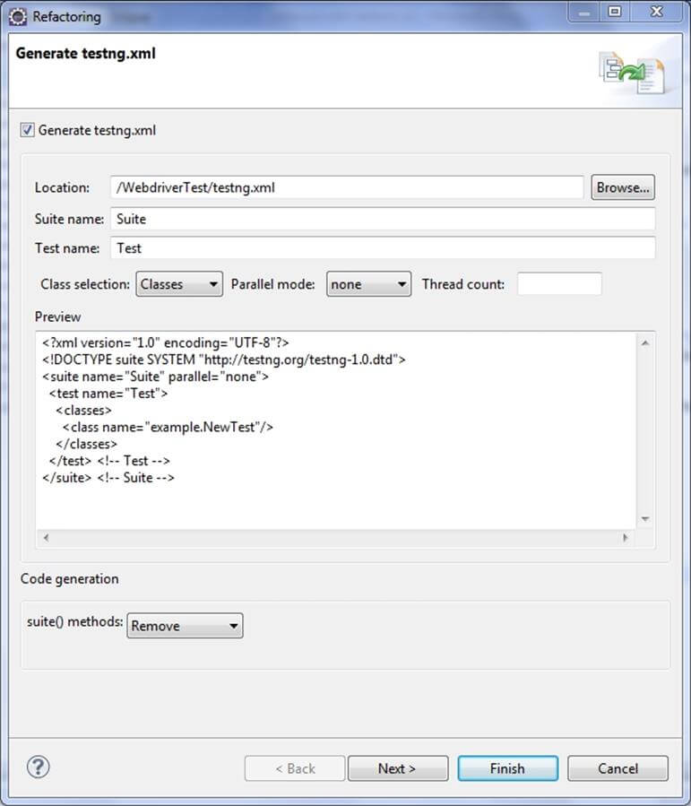 Eclipse will create testng.xml which says that you need to run only one test with the name NewTest as shown in the following screenshot: